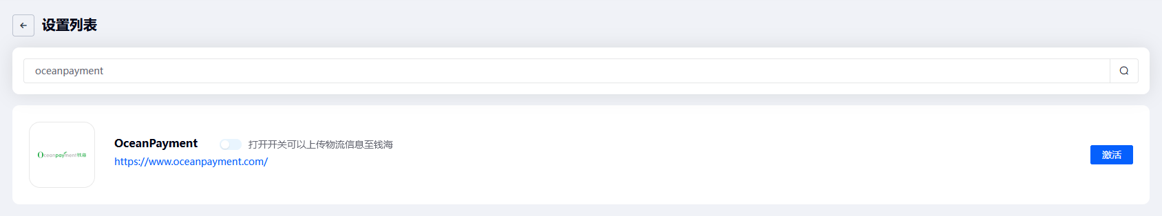 超店(Shoplus) 信用卡安装流程 2025年3月7日 2025年11月7日 安装 登陆Shoplus店铺后台,访问【设置】-【支付设置】-【信用卡收款】-选择Oceanpayment,点击激活。 配置信息 填写Oceanpayment提供的配置信息,账户号(account)、终端号(terminal)、秘钥(secureCode)。 支持卡种 勾选支持的卡种logo,没有申请的卡种不需要勾选。 卸载 找到信用卡支付方式,点击停用。