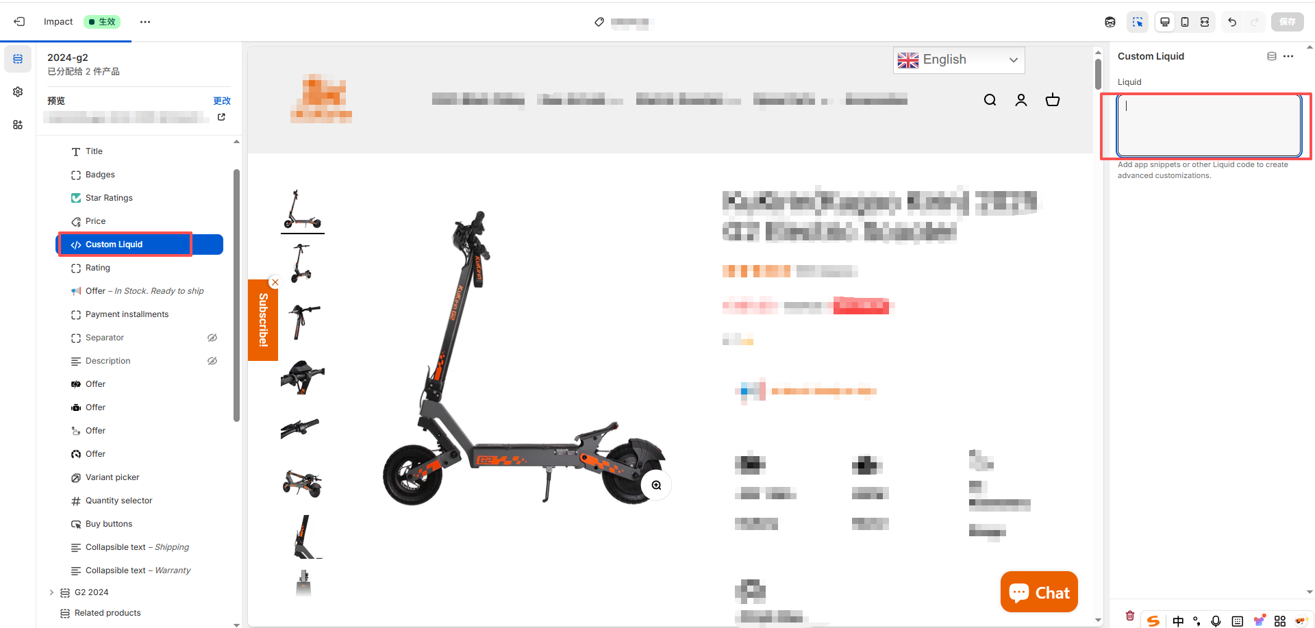 4、点击 【Custom Liquid】->【Liquid】,然后在Liquid框里添加代码