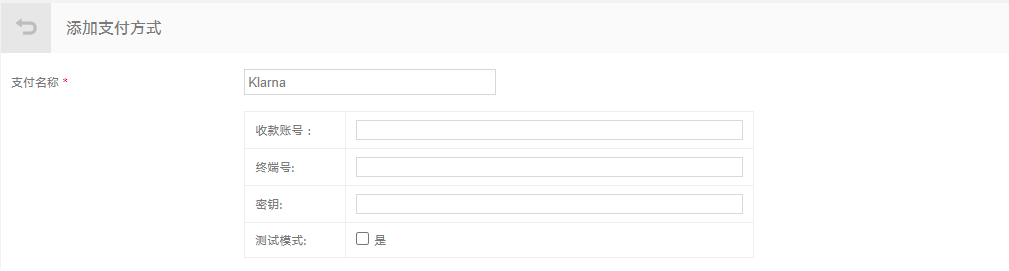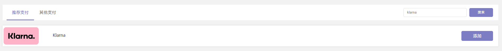 Shopyy-Klarna 本地支付安装流程 2022年10月11日 2025年11月11日 安装 登陆Shopyy店铺后台,访问【店铺设置】-【支付设置】-【推荐支付】-搜索Klarna,点击添加。 配置信息 填写Oceanpayment提供的配置信息,收款账号(account)、终端号(terminal)、秘钥(secureCode)。 卸载 找到Klarna支付方式,点击删除按钮。