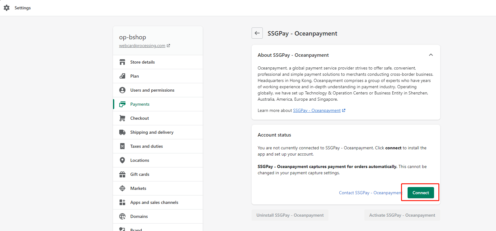 1. 通过APP应用市场找到SSGPay-Oceanpayment安装:https://apps.shopify.com/ssgpay-oceanpayment